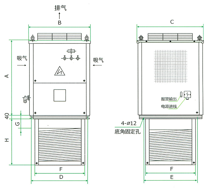 1、機(jī)組的進(jìn)風(fēng)口需保留≮50cm的空間,在熱風(fēng)排出口處需保留≮150cm的空間;